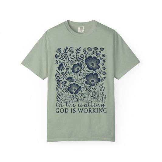 Faith Floral T-Shirt — "In the Waiting God Is Working" Inspirational Tee